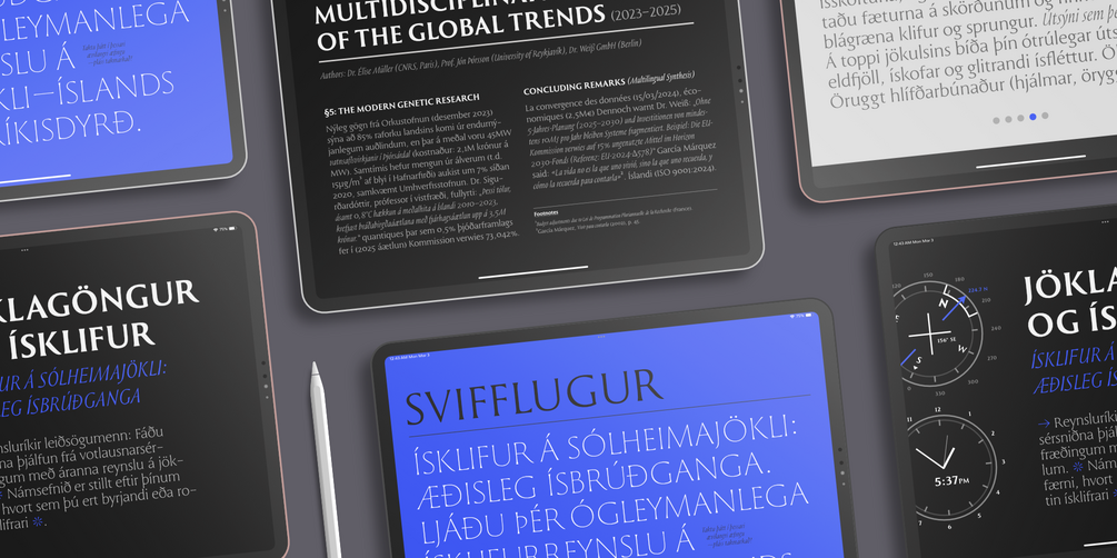Design versatility drives this iteration, featuring extensive OpenType functionality including standard and discretionary ligatures (lineal, overlapped, and nested variants), alternate glyphs, and contextual alternates, multiple ways to display numbers (traditional lining, oldstyle, fractions, superiors and inferiors). The result is a compact yet expressive font family that balances playfulness, modernity, and timeless elegance.